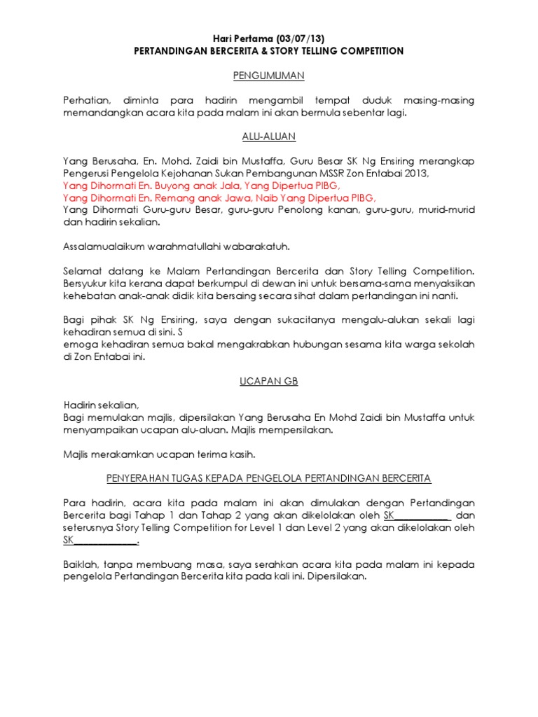 Teks juruacara pertandingan bercerita kategori sekolah rendah. Sumber bahan cerita hendaklah. Sekolah Rendah Kategori Tahap 1 2 wajar dijadikan aktiviti pertandingan pada.