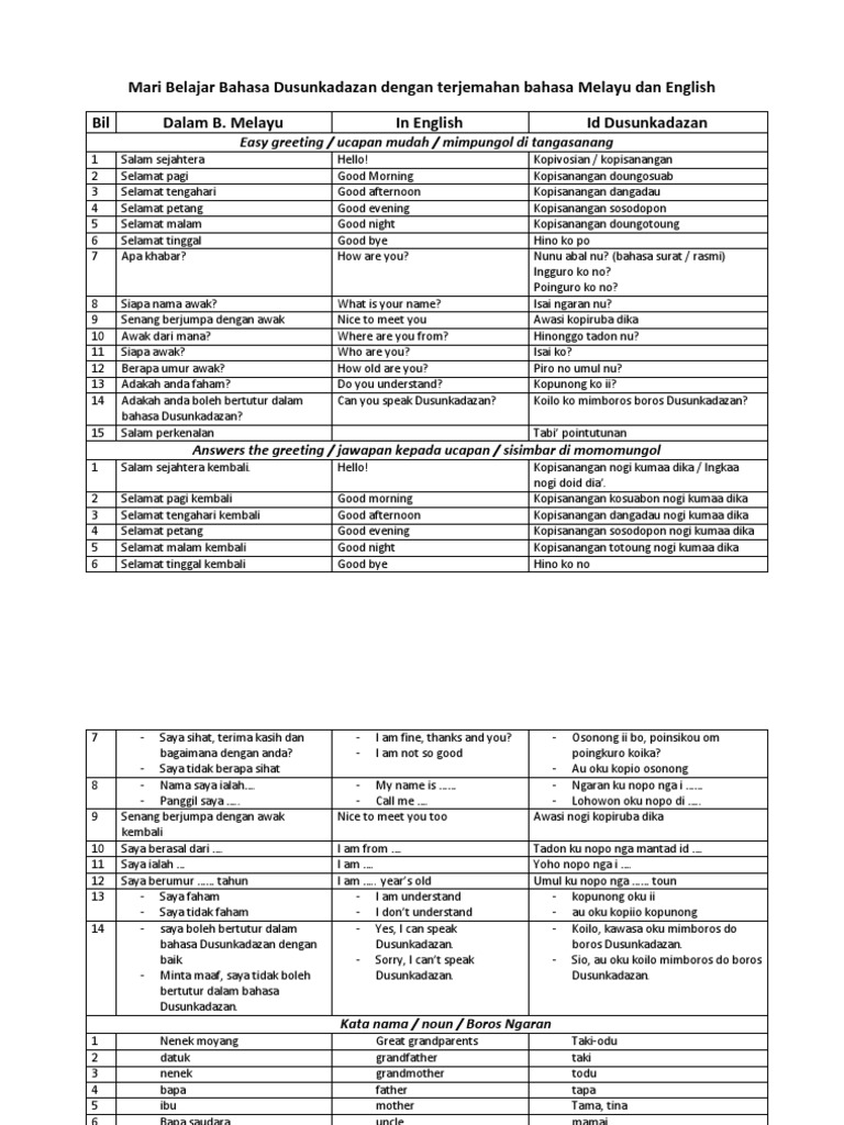 Mari Belajar Bahasa Dusunkadazan Dan Bahasa Melayu Dan English Pdf